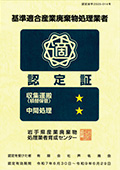 - 認定書(基準適合産業廃棄物処理業者)を更新しました。